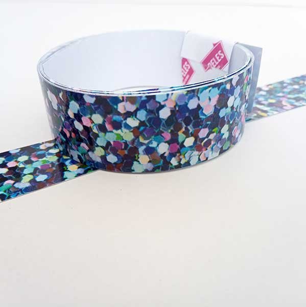 Nuestras cintas Glitter Azul Plata con sus diseños Glitter aporta tambien diversos colores para destacar el brillo de la laca en tus proyectos.