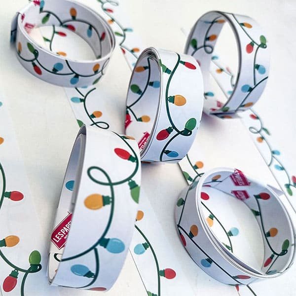 Nuestras cintas de papel Luces con su estilo navideño, brindan además de su diseño un aporte de diversos colores a tus creaciones.