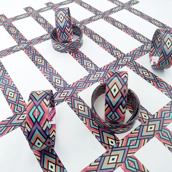 Nuestras cintas de papel Rombos con su estilo romboidal, brindan ademĂ¡s de su diseño un aporte de diversos colores a tus creaciones.