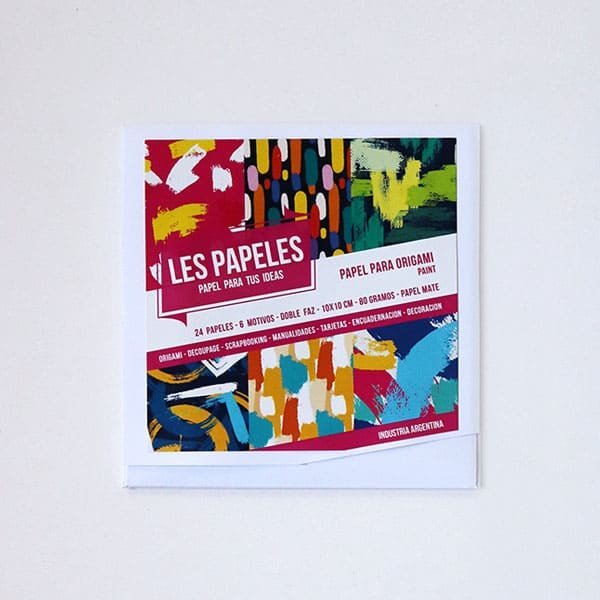 Paint es un papel para origami con un diseño de pinceladas en el frente y lo acompañan en el dorso colores solidos.