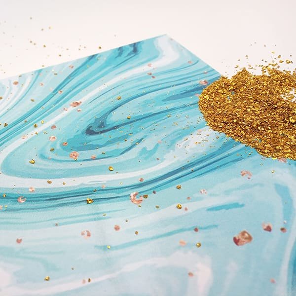 Marble 3 ademĂ¡s del increĂ­ble diseño y color estan impresos sobre ilustraciĂ³n mate 150 grs + laca UV brillante para expandir su diseño y colores, una lamina lista para rebatir y crear las tapas de todo tipo.