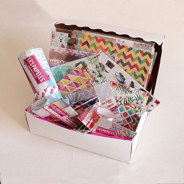 Aprovecha ademĂ¡s del descuento de esta caja repleta de papeles para Scrapbooking y otras tĂ©cnicas, una completa variedad de Les Papeles, encontra muchos de nuestros producto tales como Apliques Block, origami, laminas, Tags y cintas.