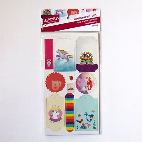 Cada pack contiene 3 laminas con 10 tags pre-troqueladas que permiten sacar y usar. Impresos en cartulina rĂgida.
